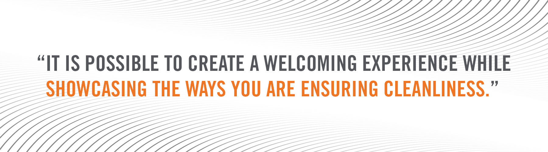 It is possible to create a welcoming experience while showcasing the ways you are ensuring cleanliness. If you have a meeting room as part of your booth, rather than hiding the air filtration unit in a cabinet, let it be seen. Be obvious about your cleaning. Seeing your event staff regularly disinfect surfaces will promote a feeling of safety. Finally, acknowledge that it is important for attendees to feel comfortable selecting or sampling a beverage or snack. If your company traditionally provides food and beverage at an event, look for single-serve ways to continue your tradition.