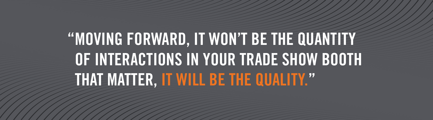 When trade shows return, the number of attendees might be smaller, but they will also be more targeted. True purchase influencers and decision-makers will be there. Moving forward, it won’t be the quantity of interactions in your trade show booth that matter, it will be the quality.