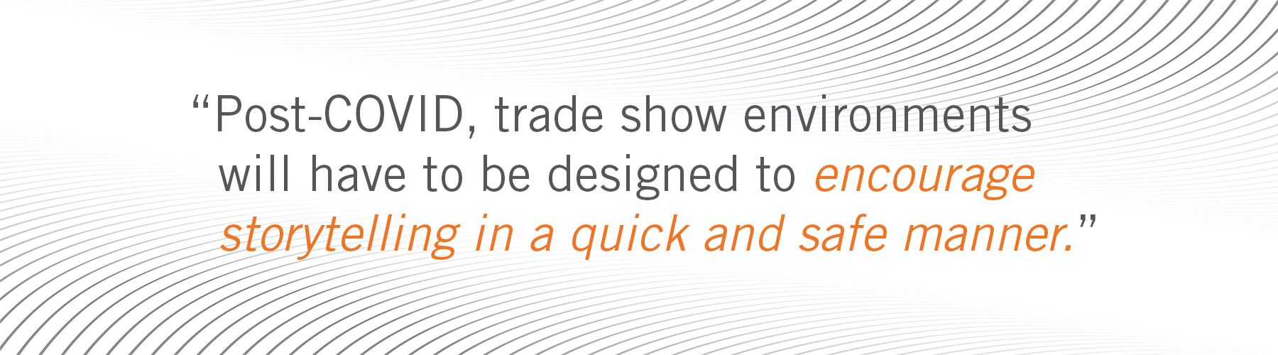 It might seem like an overwhelming challenge… or maybe it seems like a challenge you’ve put on the back burner while trade shows are still on pause. However, we recommend preparing for these challenges (and opportunities) now so you and your teams are prepared once in-person events come back. Our vice president of creative, Todd Sussman, gave us four tips to consider when planning future in-person events that will help you capture the attention of your limited audience, and engage them in brand experiences that are worthwhile and safe.