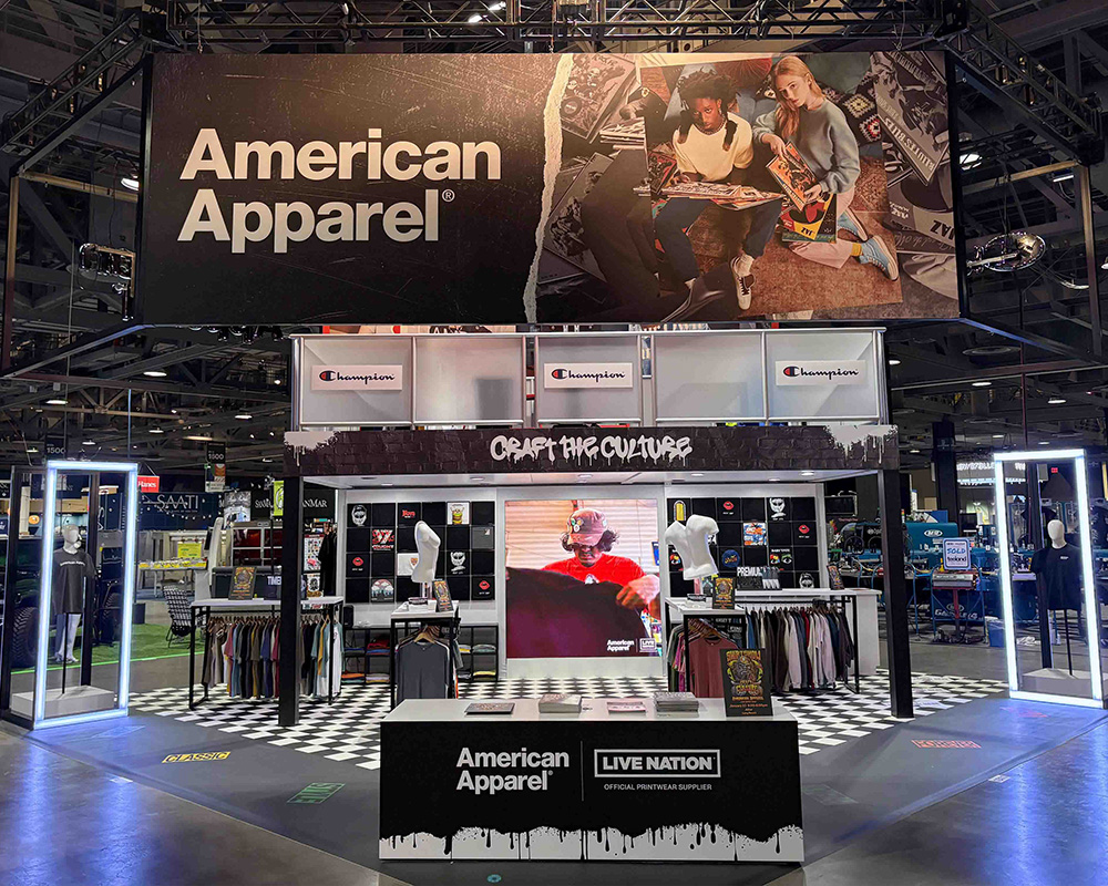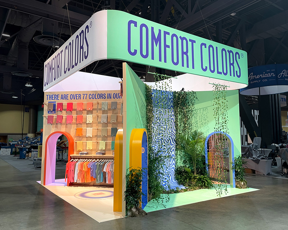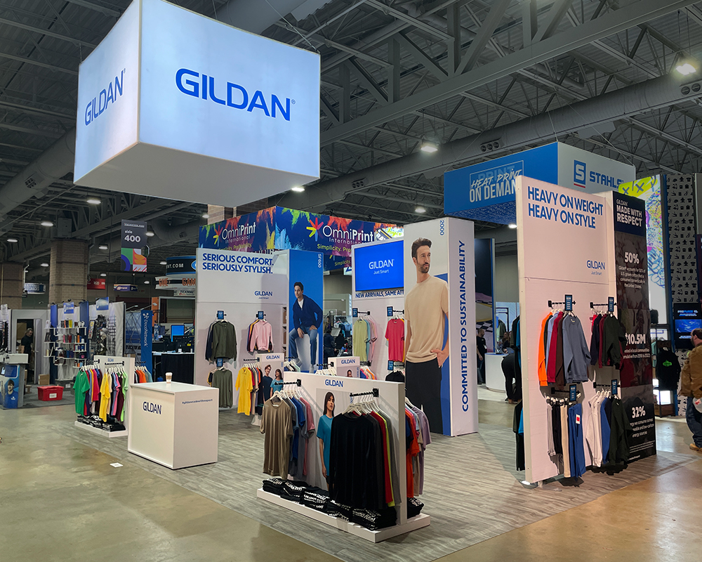 Gildan is the parent company for several sub-brands that we have supported various exhibiting strategies for, including Gildan, Comfort Colors, American Apparel, Anvil, and more—each exhibiting together under a house of brands as well as separate booths for individual brands at a single event. Together, we’ve developed a strong working relationship built on strategic design, operational efficiency, and clear communication, helping Gildan elevate its brand presence and realize its marketing objectives.