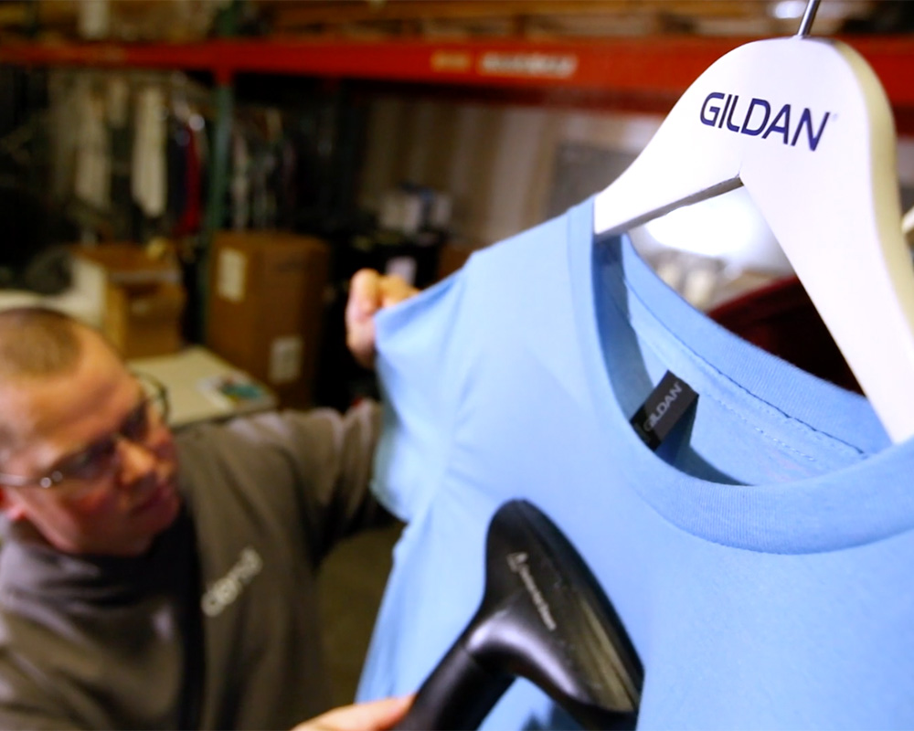 We designated an area in our warehouse—the “Gildan Store”—dedicated to supporting Gildan’s product fulfillment operations. This space houses racks of apparel, mannequins, literature, hang tags, and steaming equipment, all of which facilitates seamless trade show and open house setups. By having this dedicated space, Derse ensures the products needed for Gildan’s show schedule are readily accessible, organized, and handled with care.