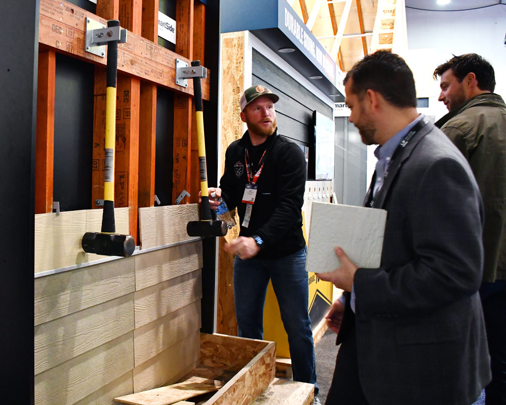 For one of the engagements, we created a display in which attendees could pull back and release a sledgehammer into one of their competitor’s fiber-cement siding, which disintegrated, and then released another sledgehammer into LP’s SmartSide siding which remained intact. The idea for this demo came from one of Derse’s carpenters who developed the initial prototype ten years ago – this impactful demo is still in circulation today.