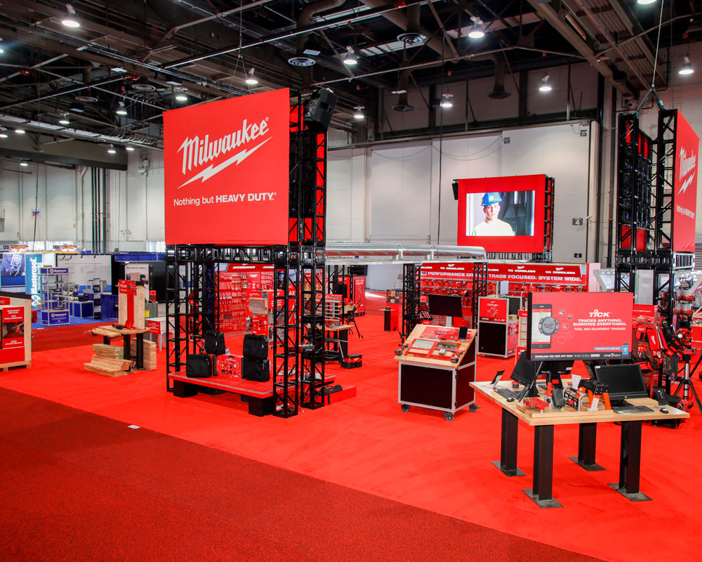 At the heart of Milwaukee Tool’s exhibiting strategy are product demos. As new tools launch every year, new demo stations are produced. Milwaukee Tool’s brand teams work with Derse to ensure relevant product demos requested by their sales representatives are brought to each show along with the necessary resources to make them effective.
