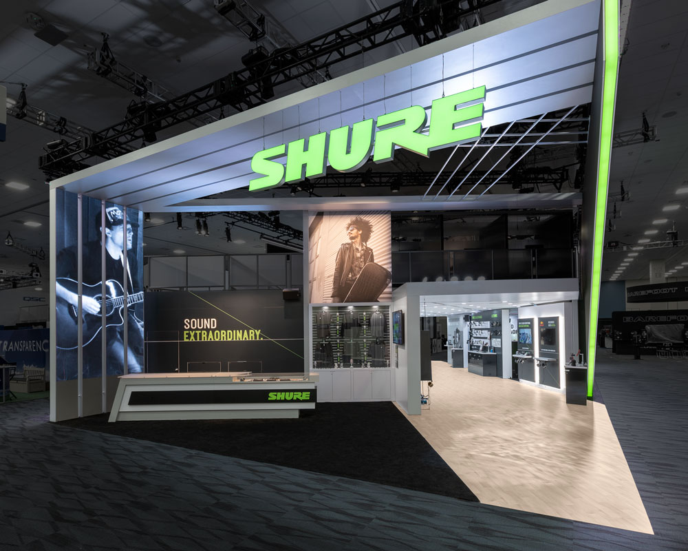 Shure challenged Derse to bring Shure’s new brand identity to life by creating a memorable brand and lifestyle experience. Through this, Shure would introduce their brand to a broader segment of consumers who attend the annual NAMM conference. Shure wanted to build increased awareness among end-users, influencers, and press.